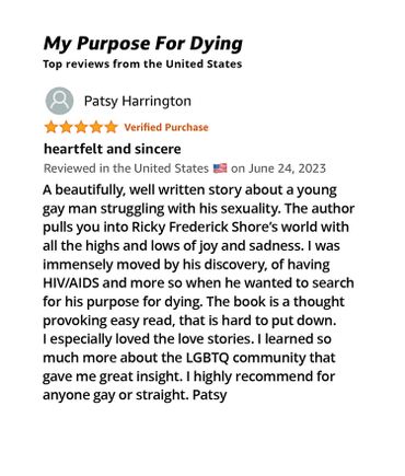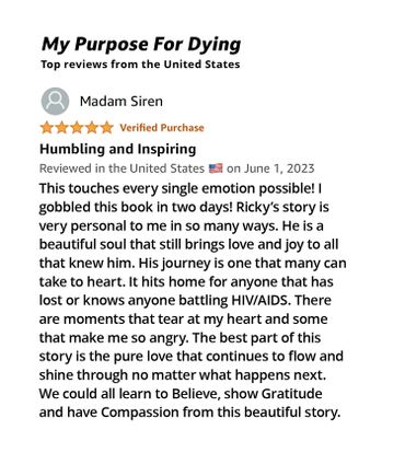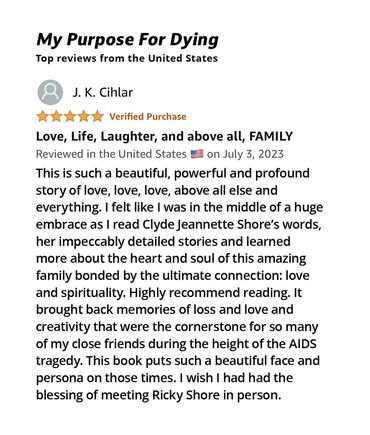 Born July 15, 1959, in Pittsboro, North Carolina, Ricky Frederick Shore possessed an obscure and positively supernatural destiny suddenly revealed to him toward the end of his short-lived, adult life. The youngest of seven children, raped at age three by his stepfather, and barely escaping a suicide attempt at nineteen, Ricky knew he was uniquely different harboring in himself a raw power of creativity and a wild imagination well ahead of the other boys in the rural south. Wrought by visions of an abusive father trying to kill him and his mother while he was still in the womb, he obsessively sought to seek answers about his purpose for living. Lured to New York City in the late 70’s his broken spirit begins to mend living an openly gay life twirling the nights away at Studio 54. In the 80’s, he moves to Atlanta and launches his career as a professional fashion stylist. Amid his success and the bright lights, champagne, sex and drugs, Ricky tests positive for HIV/AIDS. Jolted by the news of his health status, Ricky becomes active in the national movement to raise awareness and to protest for the need of more government assistance to those living with AIDS. After enduring some of life’s greatest hardships and sitting by the side of friends rapidly dying of AIDS, he travels to Europe on a quest to claim his personal sovereignty, falls in love with his Earth Angel, and begins a deep spiritual journey to a higher level of self-discovery. Before Ricky’s death at age thirty-four, living with his sister, through visions—he sketches out his destiny, telling the story of his purpose for dying—helping them babies with AIDS crossover.